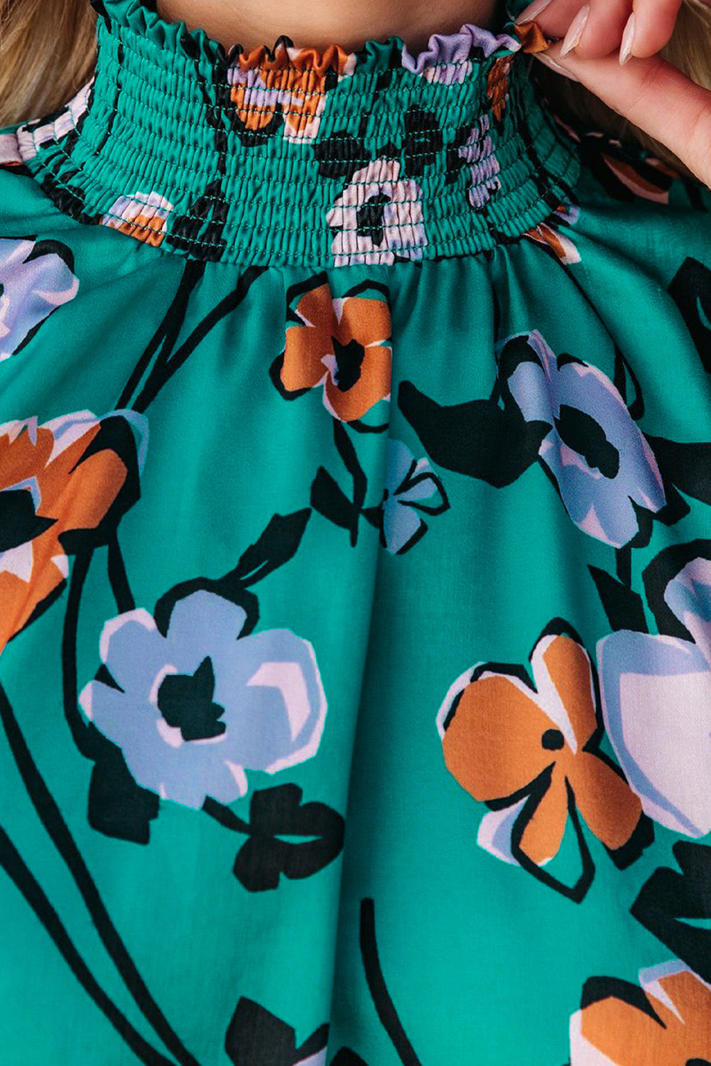•Designed with a mock neck, loose style, bubble sleeves and ruffle cuffs